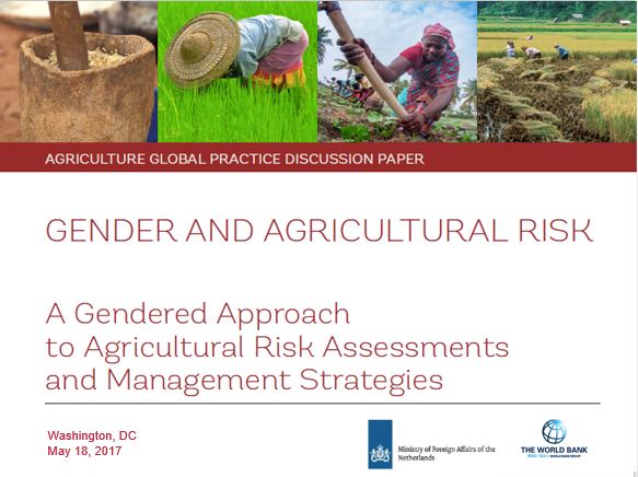 The World Bank Agriculture Global Practice is excited to announce the launch of a Discussion Paper focused on integrating the gender dimension into agricultural sector risk assessment (ASRA) practices. The paper, titled Gender and Agricultural Risk: A Gendered Approach to Agricultural Risk Assessments and Management Strategies, available here.