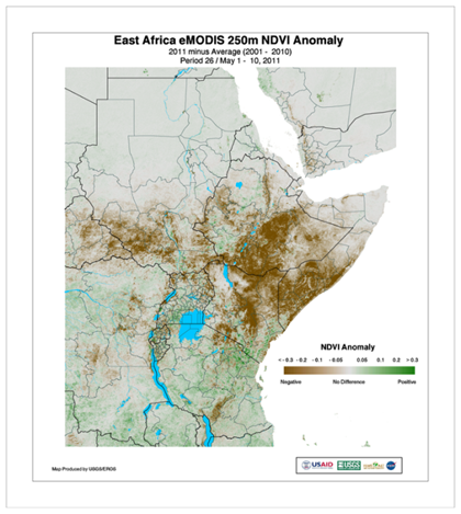 Figure 1. USGS eMODIS vegetation anomaly image for the Horn of Africa, May 1-10, 2011.
