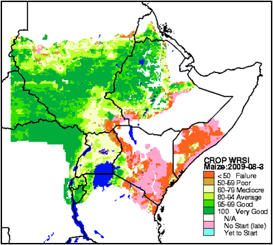 Figure 3. Example WRSI image for maize in the Horn of Africa in 2009.